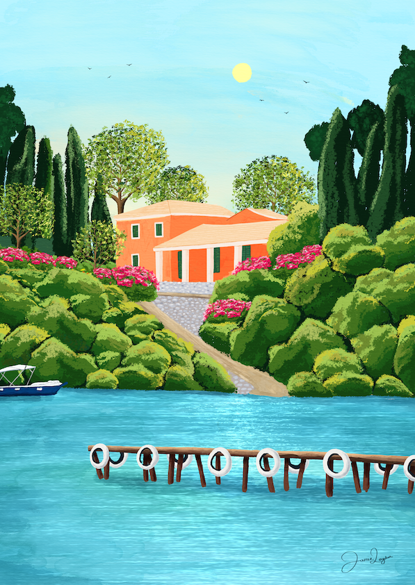 Inspired by my recent holiday to the beautiful Greek island of Corfu, this colourful print showing the stunning view from Agni Beach will bring some sunshine to any room, and would make a unique present for a loved one's home.